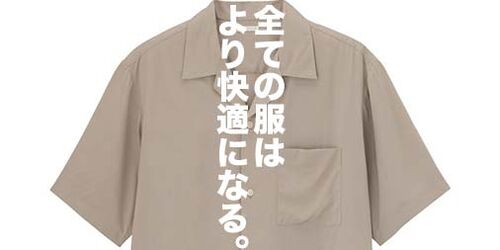 GUの新商品「オープンカラーシャツ」はトレンド性の高いデザインながら、接触冷感素材が用いられており、ファッション性と機能性の両立が図られています。