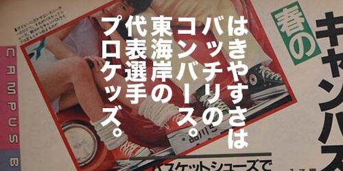 メインの特集”春のキャンパスブランド講座150”。最初のトピックスはバスケットシューズ。最初に挙げられているのが”スニーカーのビンテージモデルといえばこの一足””はきやすさはバッチリ”のコンバース。そして、”東海岸の代表選手”で”アイビーリーガーたち…