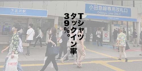 下北沢駅前で調査した、20代の男女のTシャツタックイン率は39%でした。