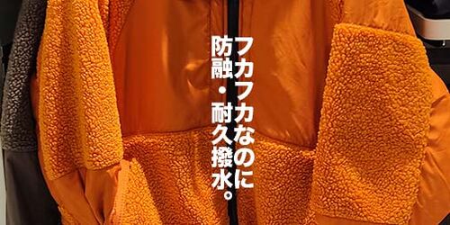 「フレイムテック フリースモンスターパーカー」の最大の特徴は、フリース生地。毛足が長くてフカフカしているボアフリース生地なのに、防融、耐久撥水機能が施されています。
