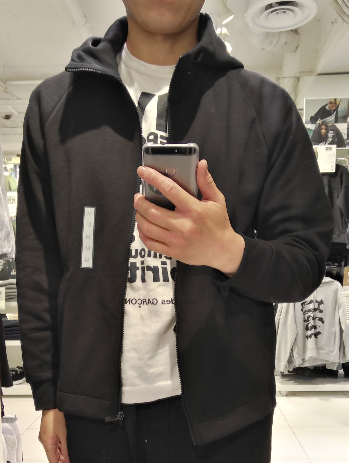 オンラインストアで画像を見たときはかなり良さげに見えたこの商品。実際に羽織ってみてもいい感じ。生地感も良かったです。