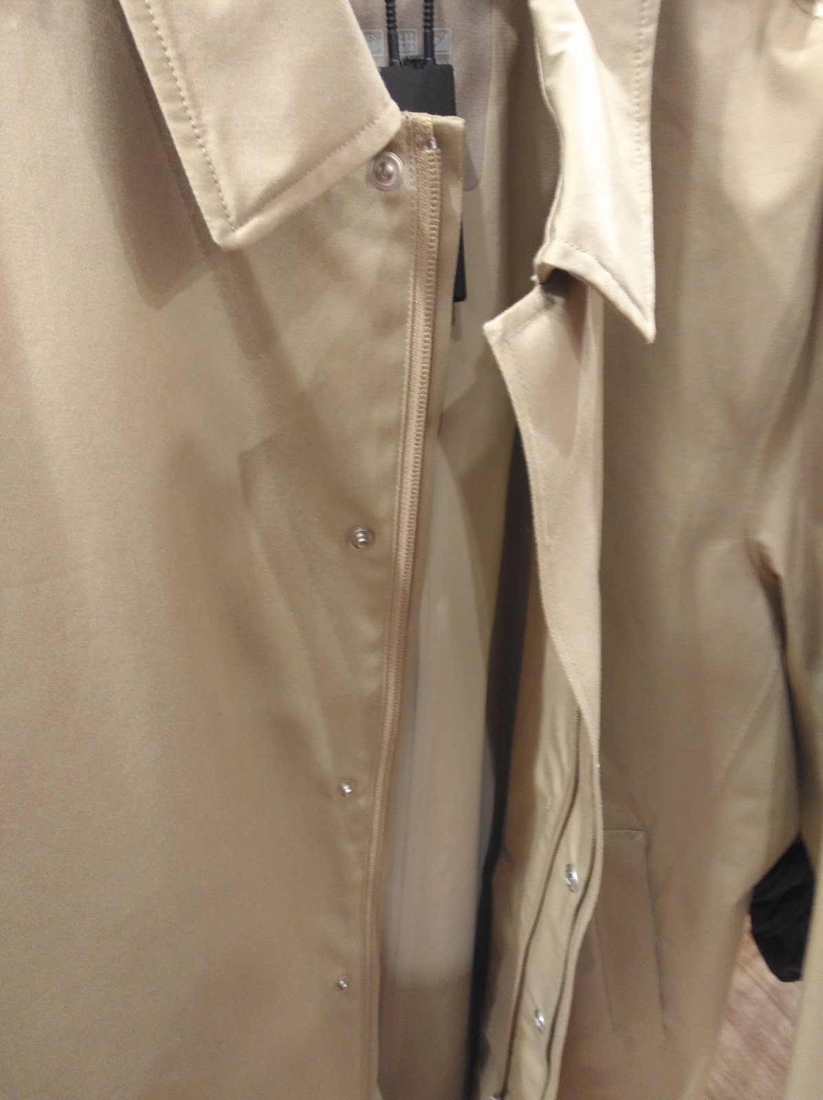 着脱可能なフードも付いているのでレインコートと割り切って購入するのならいいのかもしれませんが、ファッション目的には使えないと感じました。スナップボタンではなく、普通のボタンとジップにしてくれたらかなり違っていたと思うんですけどねぇ。残念です。