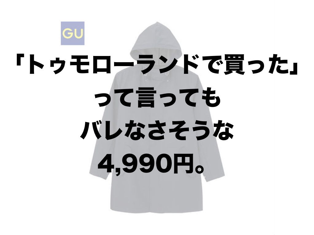 同じく薄手のコート。一般的なGUの商品に比べると値段に対するクオリティは悪くはないのですが、かなりクオリティの高いフーディコートを着たあとに見たので素材はかなり安っぽく感じてしまいました。