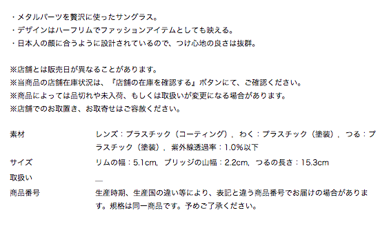 取れた部分が見つからないので、修理も不可能。正月の段階ではユニクロのオンラインストアでもサングラスの在庫はほとんどありませんでした。