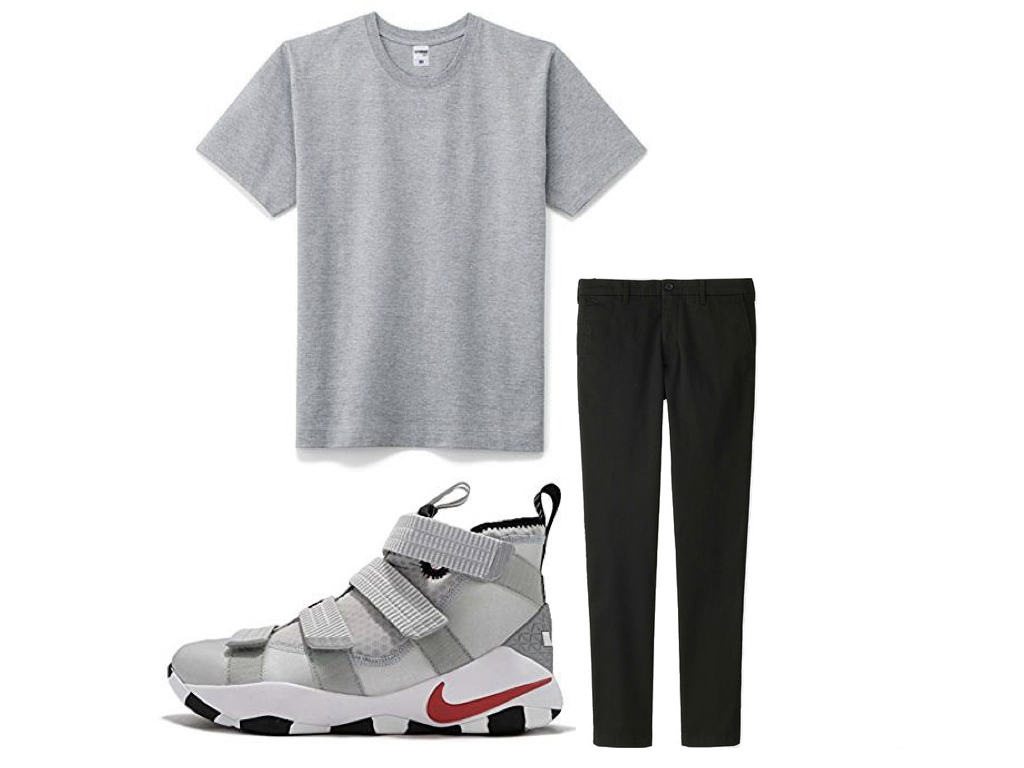 むしろ、レブロンなどのハイテクバッシュはハイテクスニーカーの記事でもご紹介したように「モード」の要素もあるので、むしろパンツは細身にして「ラグジュアリーストリート」的に履いてもいいと思います。