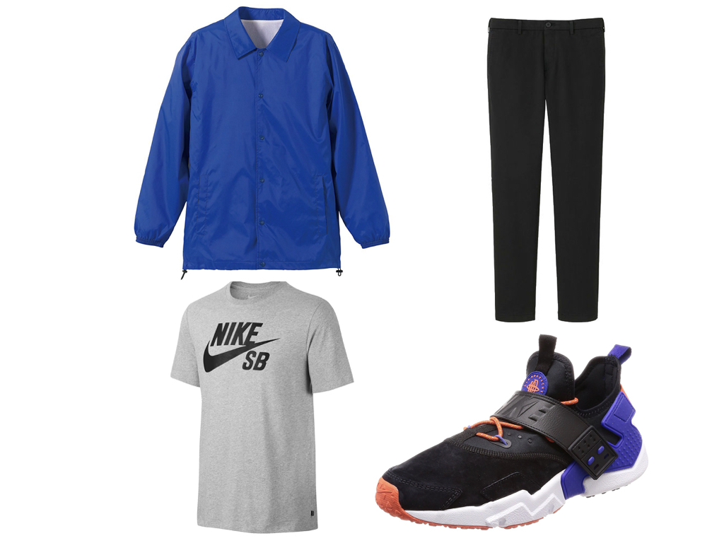 スリムフィットノータックチノは「アメカジ」アイテムであるチノパンツがベースになっているので、「アメカジ」と親和性の高い「スポーツ」アイテムとの相性は良好。