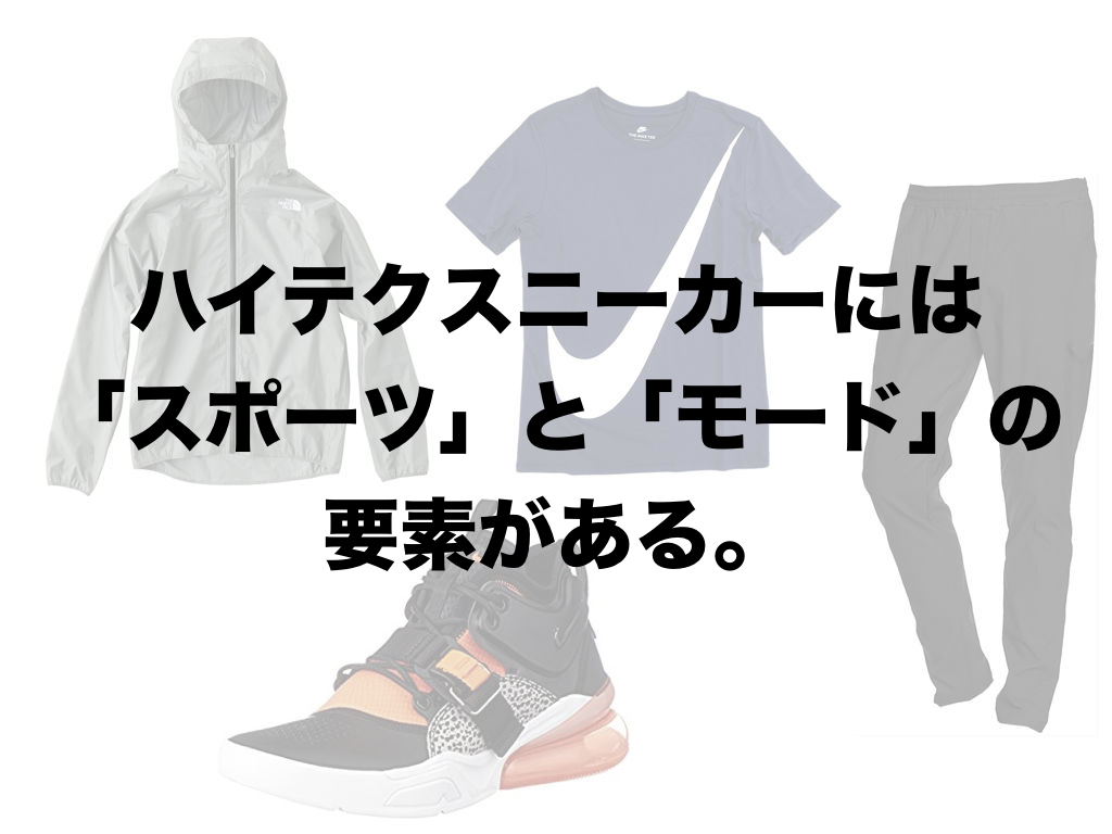まず、ハイテクスニーカーのファッションテイストを考えてみましょう。