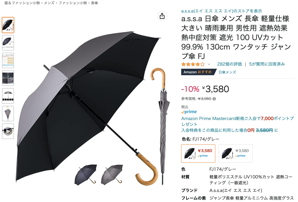 結局日傘は買っていませんでしたが、これだけ暑いと真剣に日傘導入を考え、Amazonで物色を始めました。