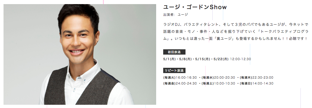 僕的にはメンズファッション誌、アフィンボーイズなんかでのモデルとしての印象が強いタレント、ユージさんの番組です。