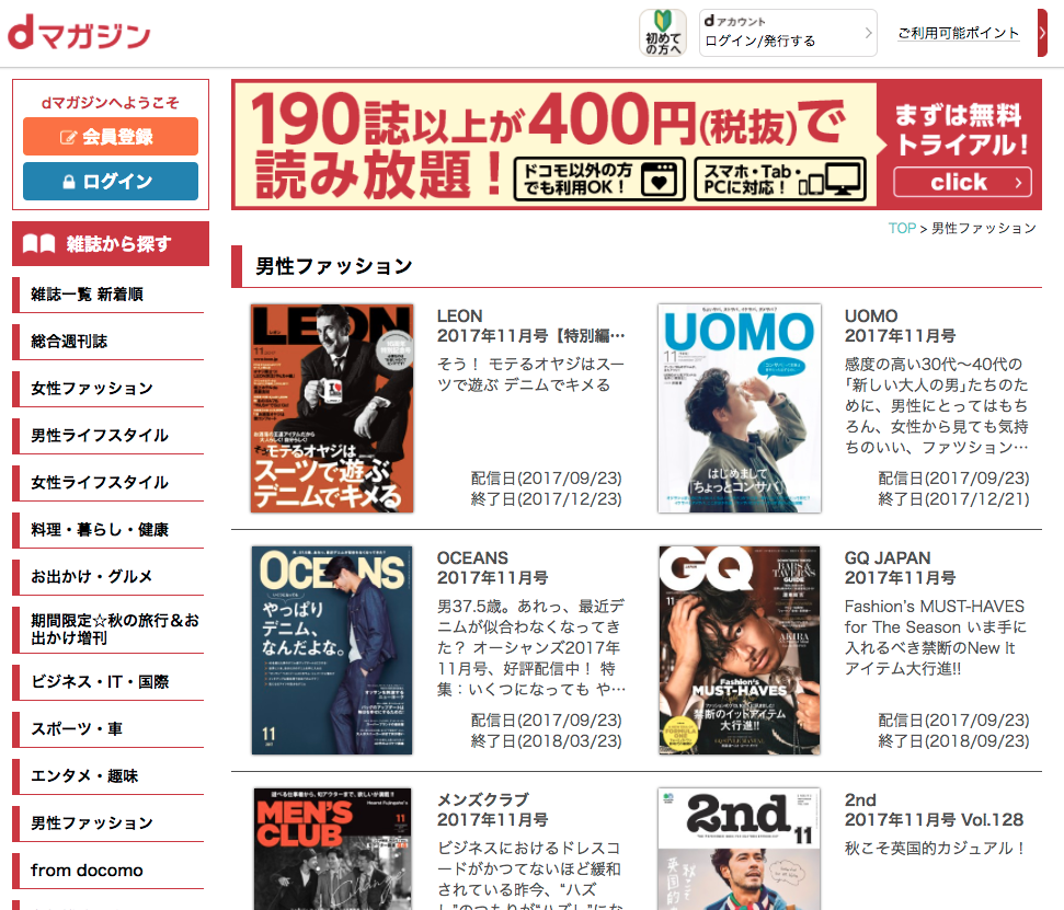 男性ファッション | 雑誌一覧 | dマガジン