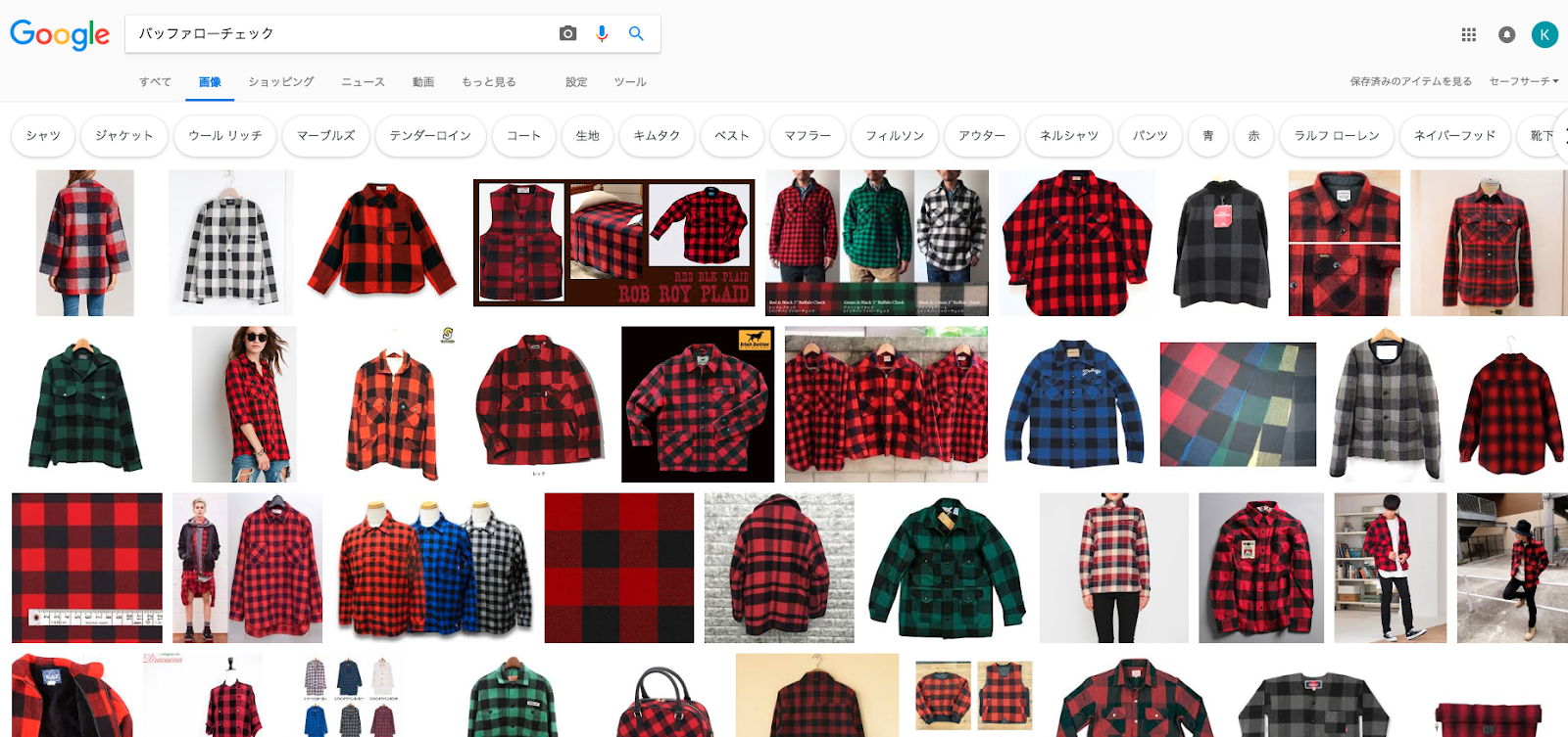バッファローチェックと呼ばれるこのチェック柄は「アメカジ」のなかでも最もベーシックなチェック柄のひとつで、画像検索をかけるとこの柄を用いた服がたくさん出てきます。