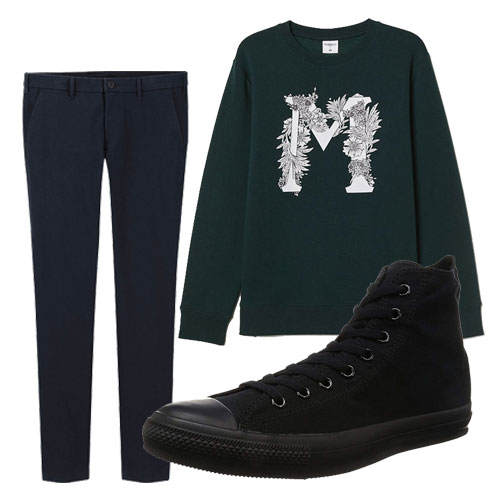 プリントスウェットはインパクトが強いので、スキニーパンツと合わせてちょっと「ラグジュアリーストリート」っぽく着ても面白そうです。