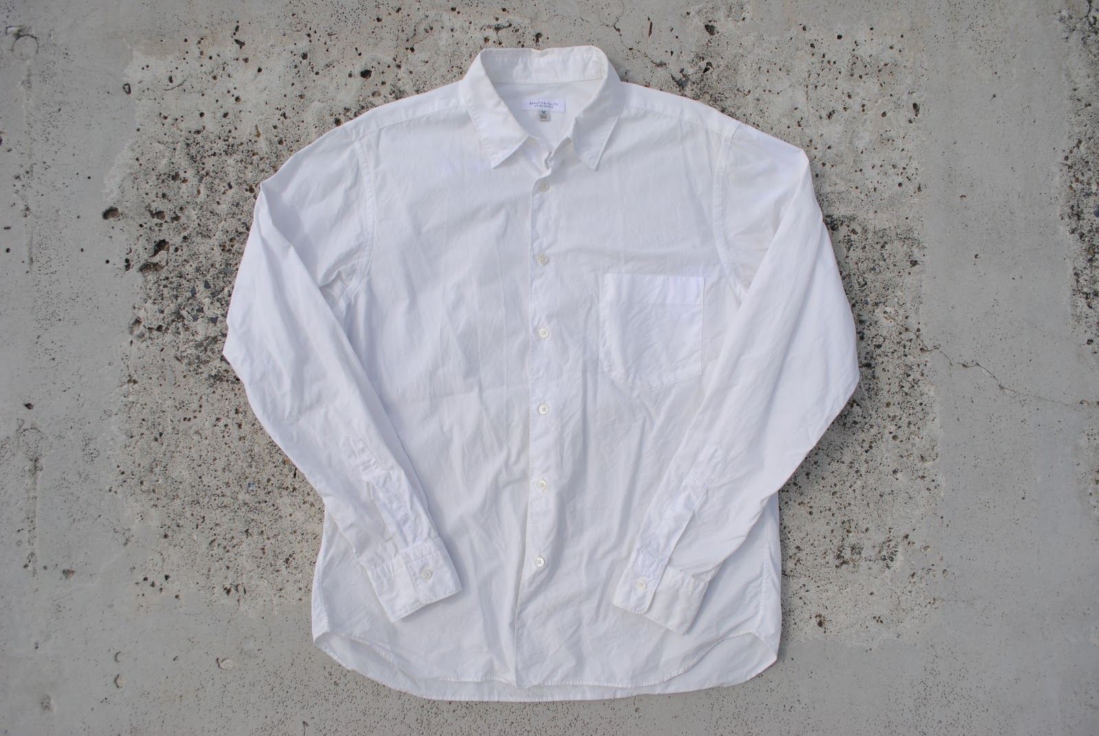 ではオシャレに見える人とオシャレに見えない人の違いは何なのか。オシャレに見えない人の最大の特徴はオシャレに見せるのが難しい服を着てしまっている、という事です。そしてオシャレに見せるのが難しい服とはデザインされた服です。世の中の多くの服にはデザインが加えられています。シャツを例に見ていきましょう。これはほぼ完全にベーシックなシャツと呼んで良いでしょう。