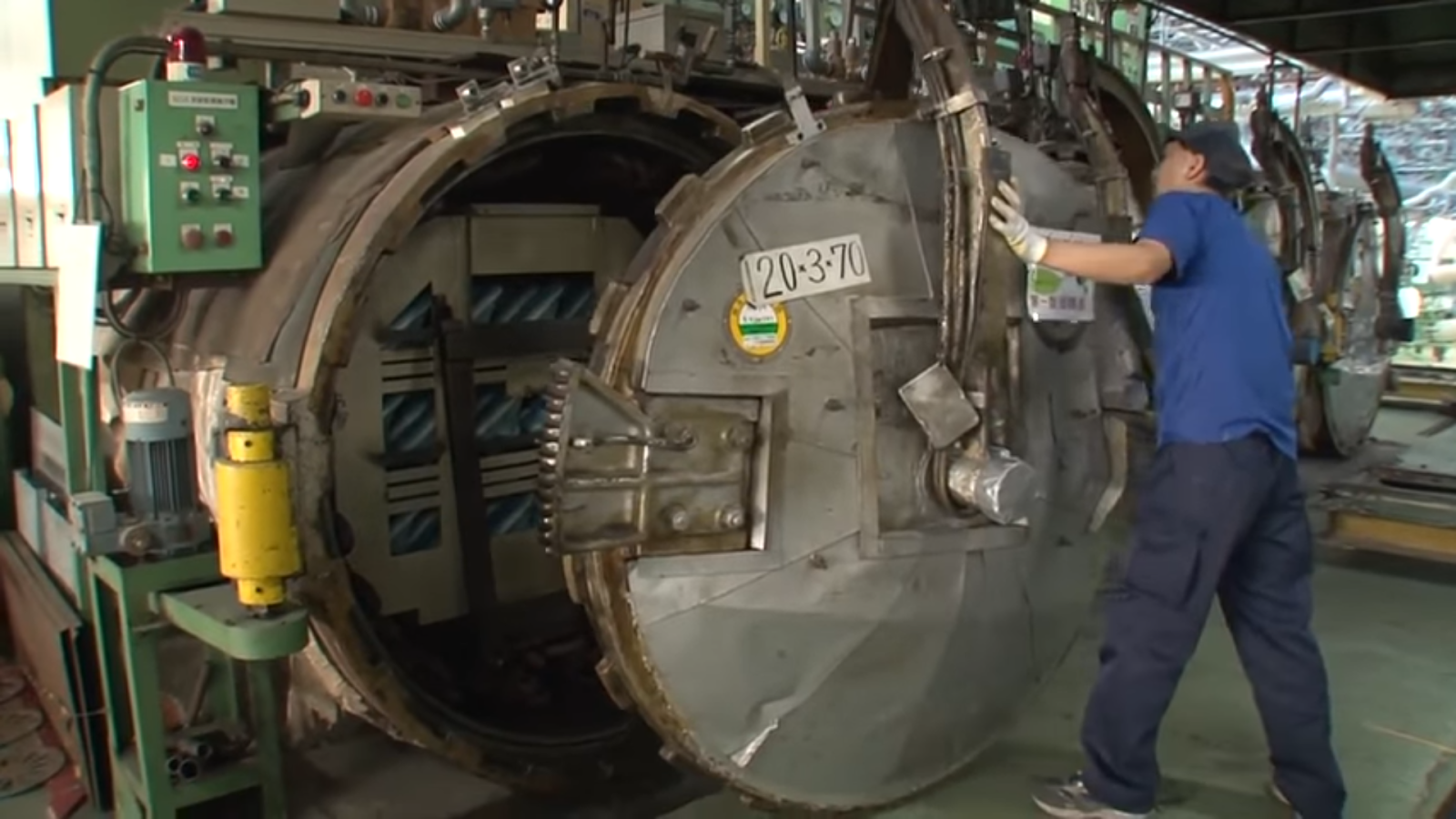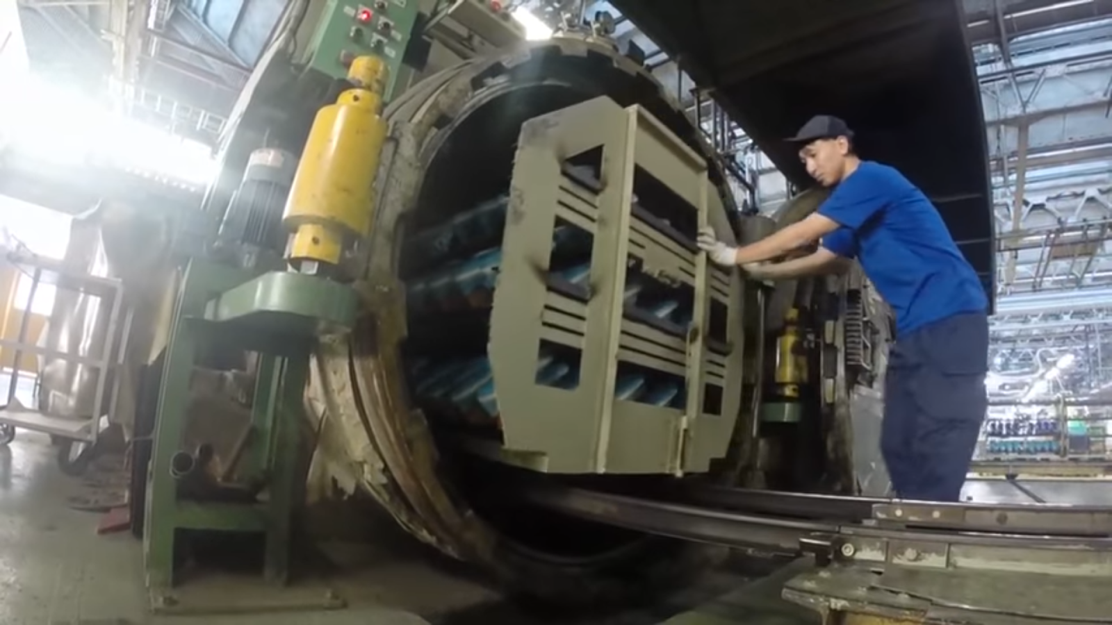加硫終了後はゴムが固まっているそうです。