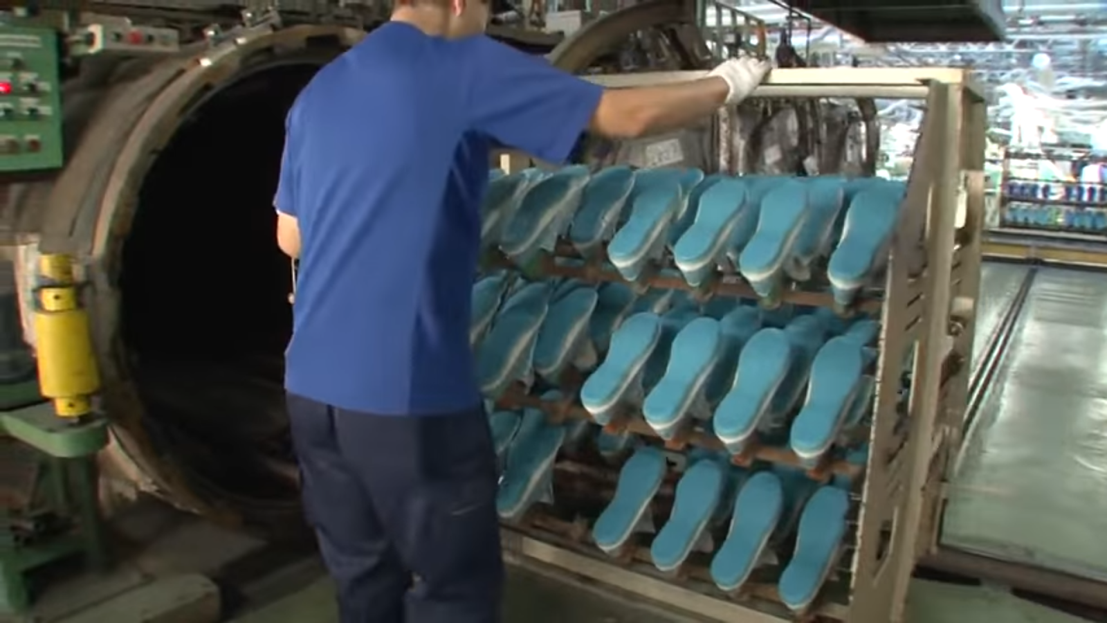ゴムが機械に入れられています。