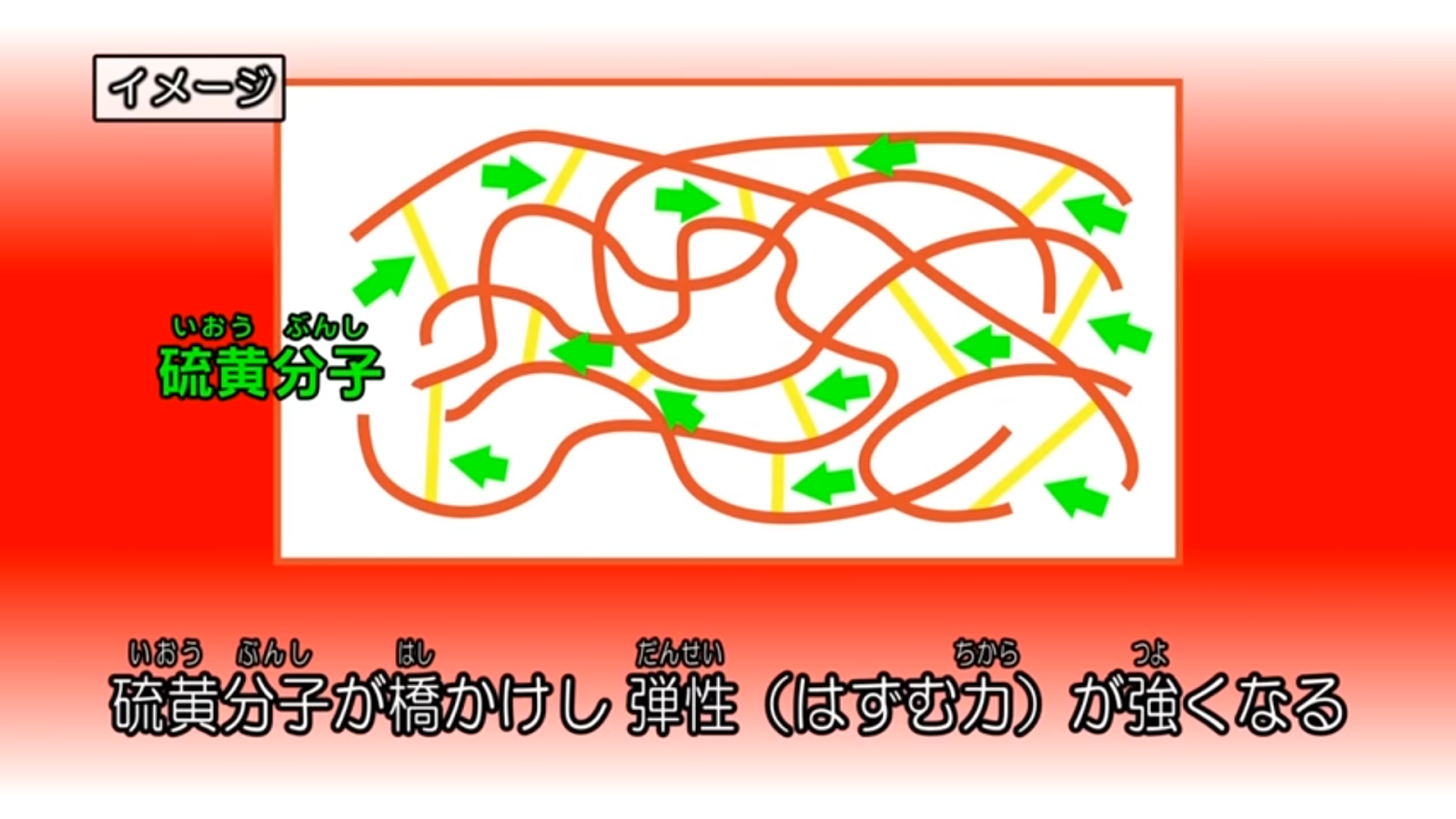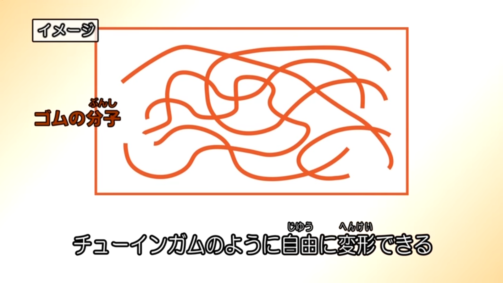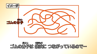 ゴムが伸びるのは分子が鎖状につながっているから。