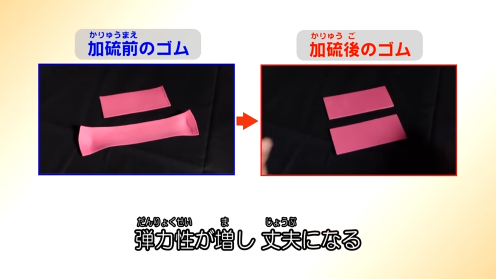 加硫すると、弾力性が増し、丈夫になります。