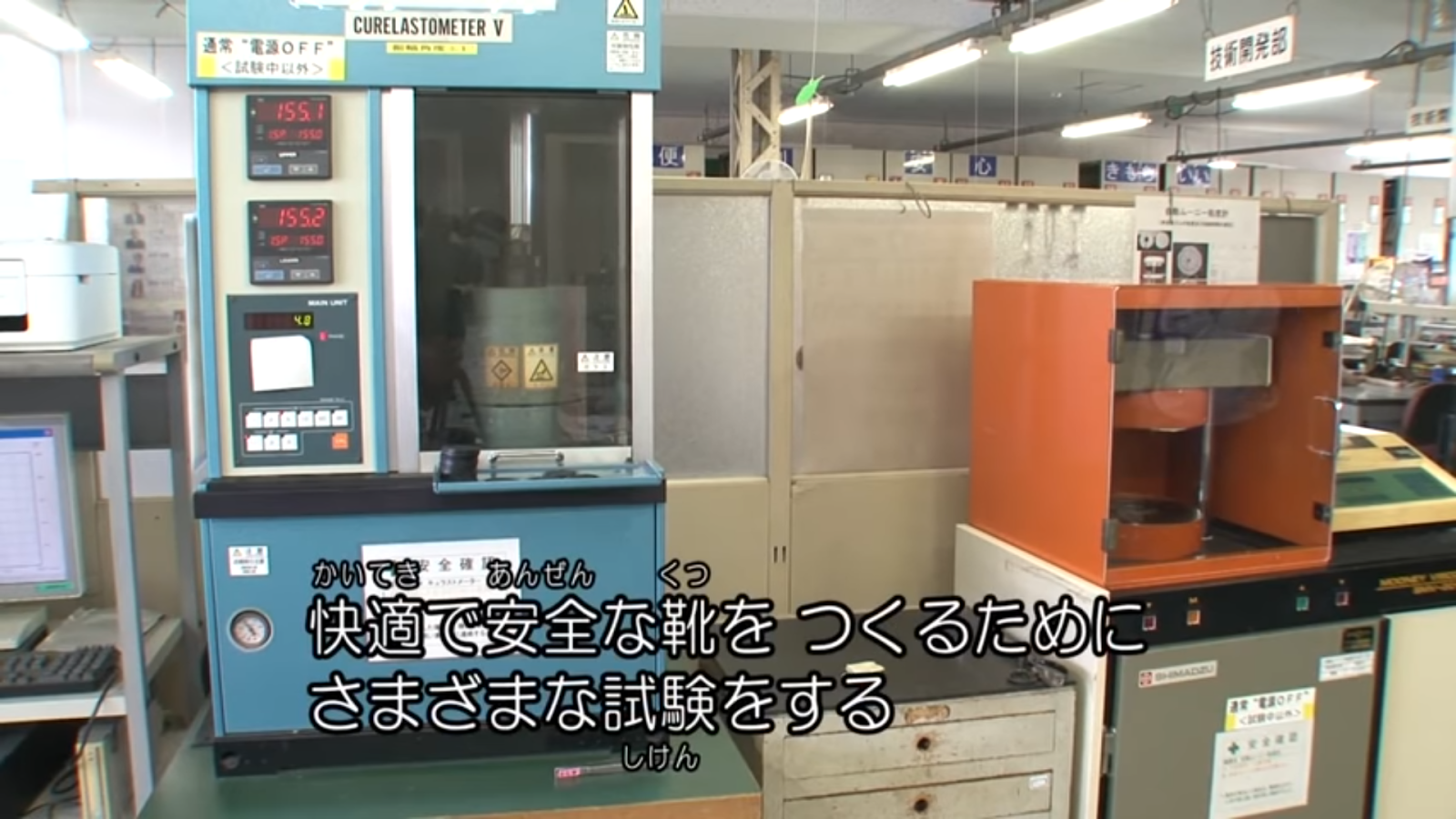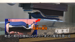 靴の試験をするのは昭和感のある機械。