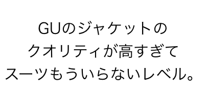 よほどファッションに関してこだわりのある人でもない限り、ビジネススーツはGUのこのセットアップで十分だと思います。