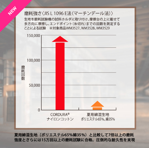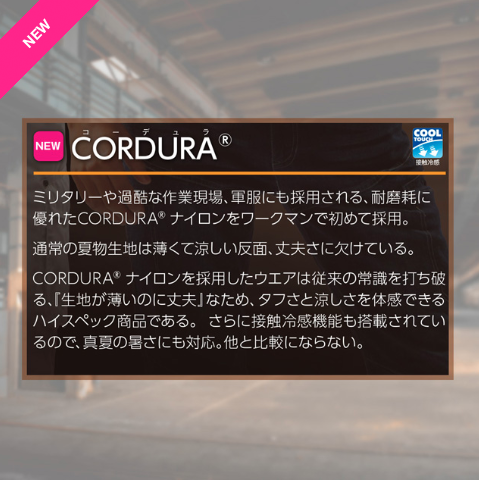 当然この商品は現場で使われることを想定したガチワークウェア。なので、コーデュラナイロン素材もファッション性が目的ではなく、その機能性の高さゆえ採用されています。摩耗にとてつもなく強いそうです。