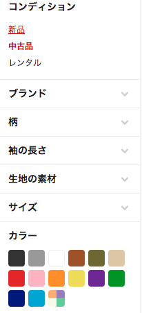 スマートフォンアプリで選択だったコンディションやサイズなどに加え、ブラウザでは「カラー」も選択できるようになっています。(つか、なんでスマホアプリでは選択できないんでしょ?)