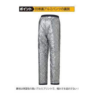 アウター同様裏地が総アルミです。このアイテムはまだ未着用ですが、相当暖かいでしょうね。警備員のバイトをしているときに出会いたかったですねー。冬場の警備員って寒いんですよ。外で立ちっぱなしなので。