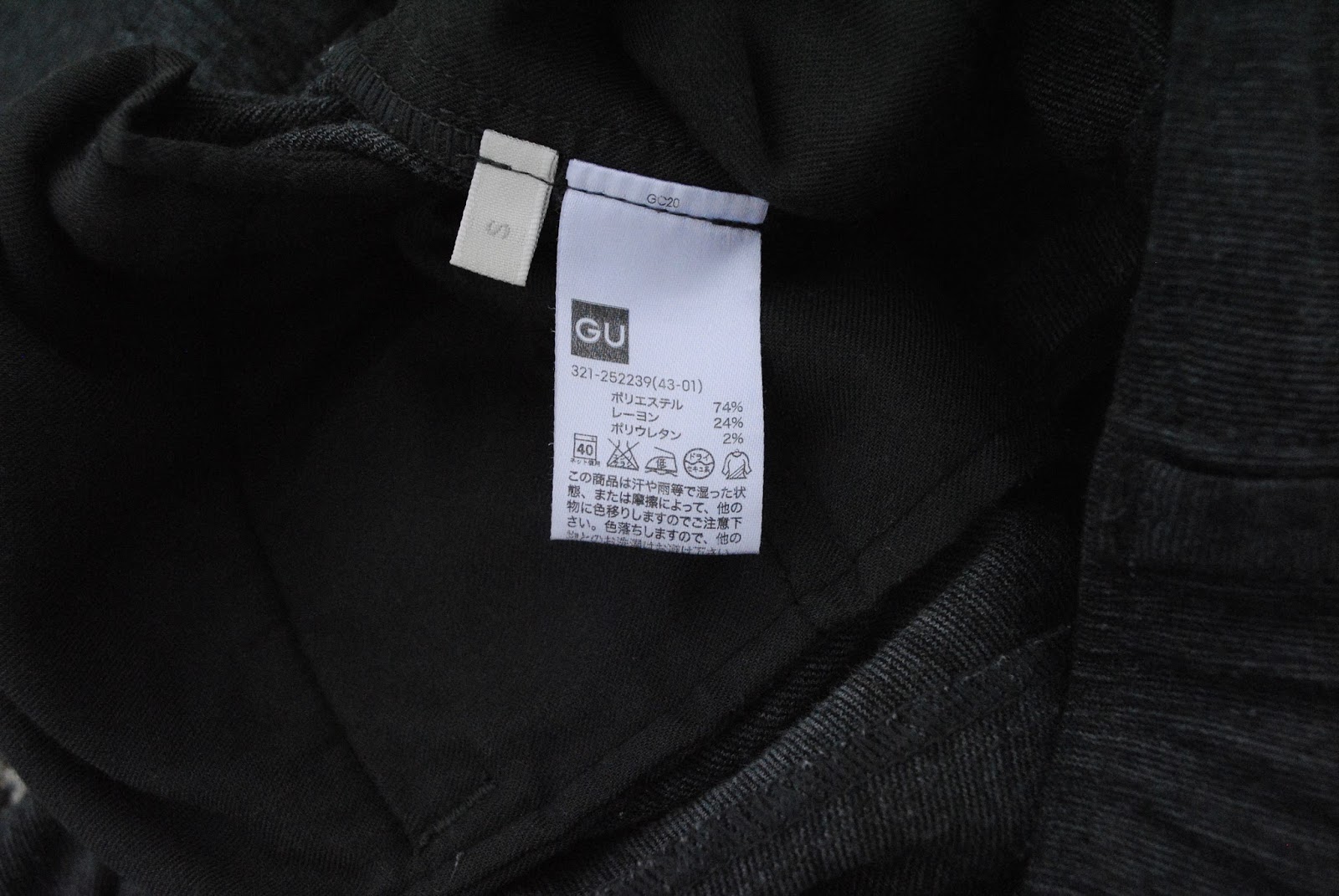3年ほど前に購入したGUのジョガーパンツです。ただでさえ安いGU、このアイテムは購入時セールにかかっており確か1,290円だったと思います。私はこのアイテムをとても気に入っており、秋冬にはかなりの頻度で穿いています。シルエットの良いから、という事もあるのですが、やはりヘビーローテションをする最大の理由は穿いていて楽だからです。とにかく軽くてストレッチ性があるのでついつい手が(足が)出てしまいます。ロードバイクでの20km通勤も余裕でこなせますし、なんならパジャマにしても良いレベルの穿き心地の良さ。それなのに細身でスタイリッシュと言う事なしの使えるアイテムです。素材の組成はポリエステル74%、レーヨン24%、ポリウレタン2%。