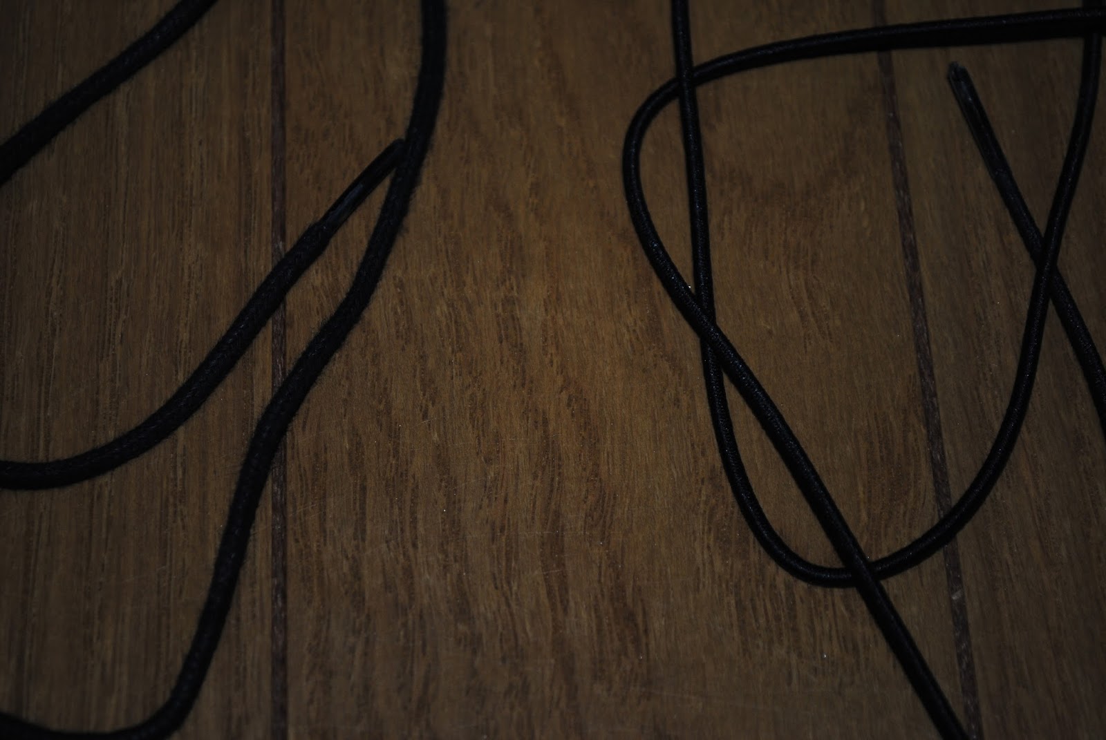 もともとコールハーンに付いてた靴紐との比較してみました。左がコールハーン、右が伸びる靴紐です。