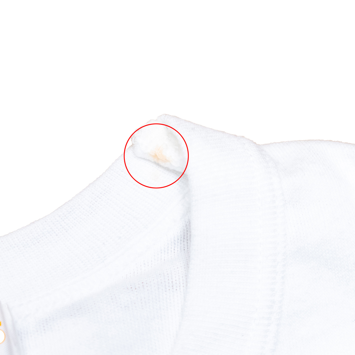首のリブ部分にも少し汚れが。こちらも洗濯したら落ちそうな気がします。まぁそもそも着たら見えませんが。