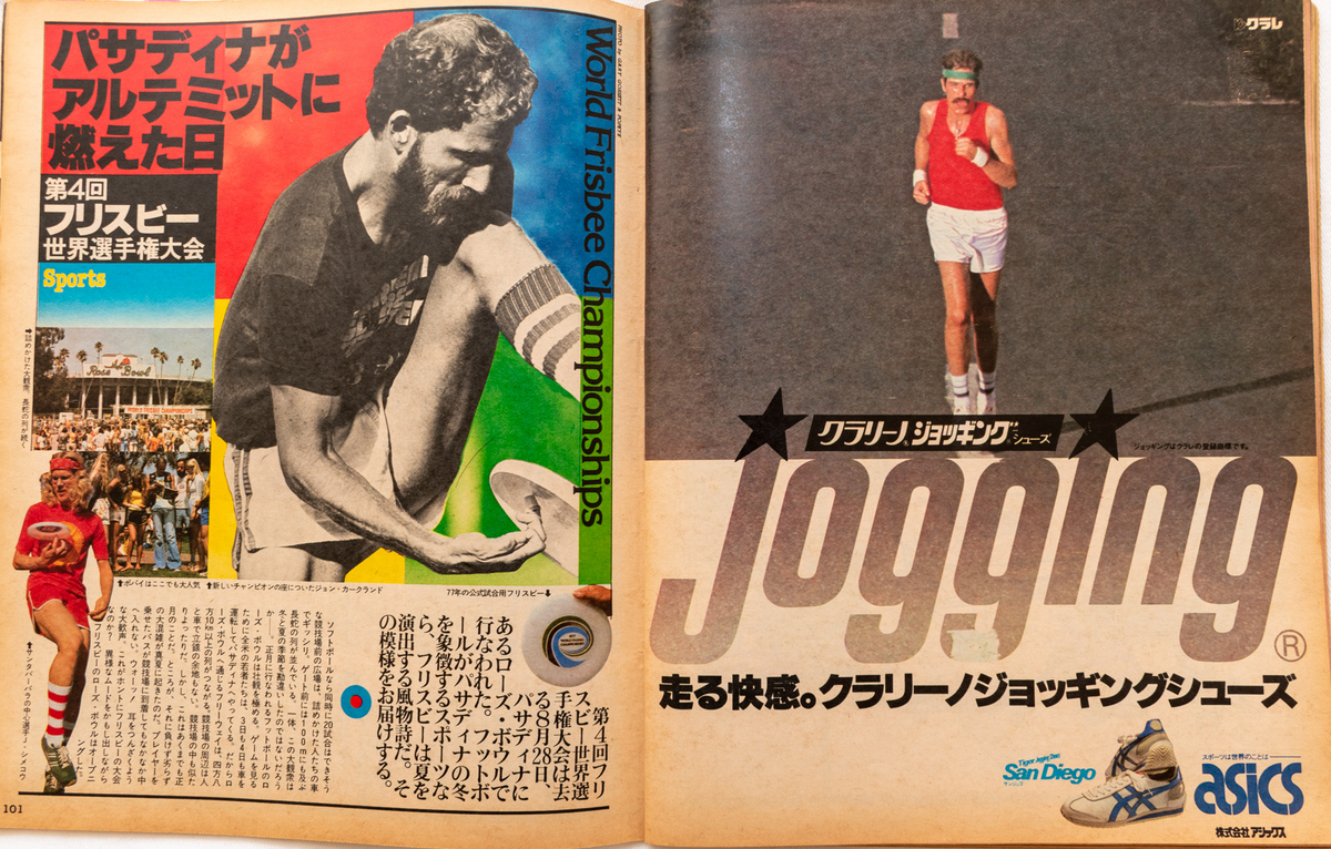フリスビー記事の横にあるのが、アシックスの広告。
