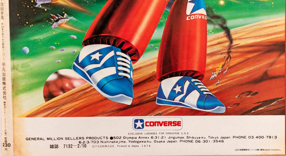 「EXCLUSIVE LICENSEE FOR CONVERSE U.S.A」とあります。ゼネラルミリオンセラーズプロダクツという日本の企業がライセンスを取得して出した広告だと思われますが、この広告の意図は何だったのでしょうか。