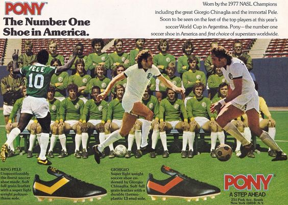 こちらはペレも登場しているポニーのサッカーシューズの広告。