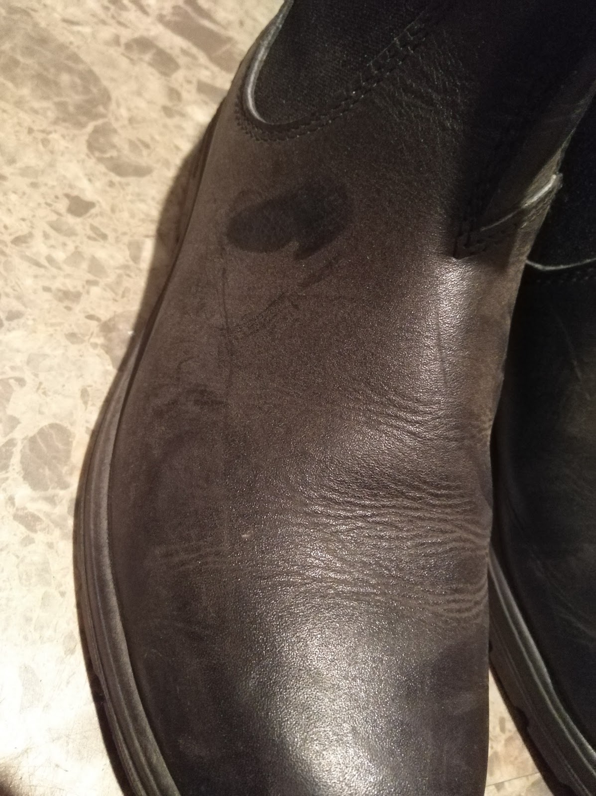 つま先に傷が付いてしまっています。