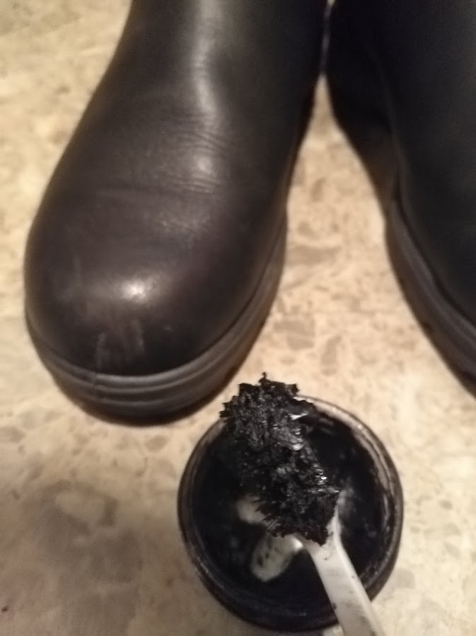 最後にブラシで磨いて終了。つま先の傷も消えました。