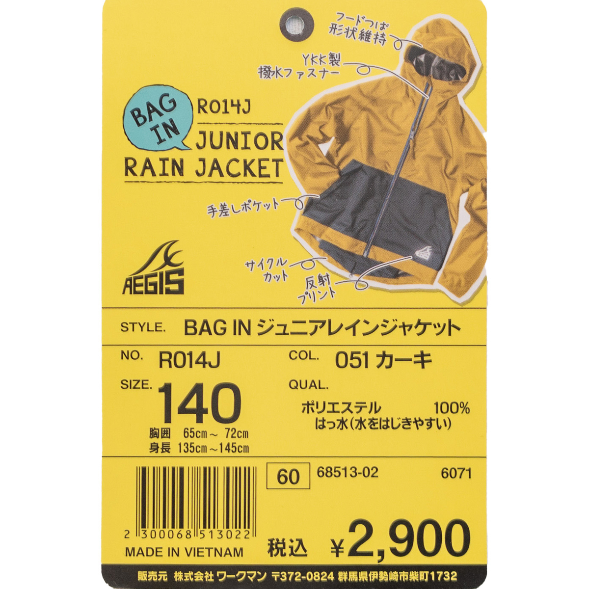 「BAG IN ジュニアレインジャケット」のお値段は2,900円(税込)。