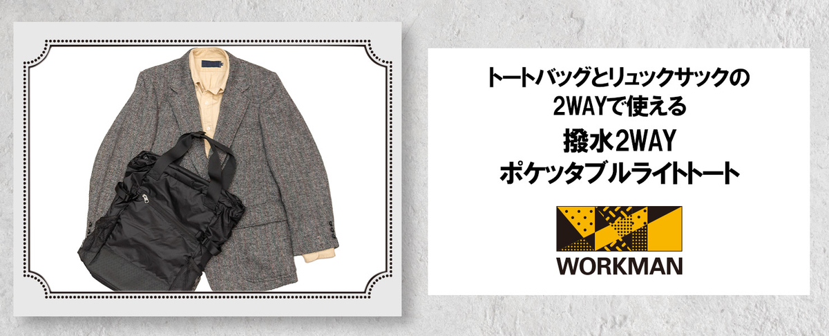ちなみに↑のバッグもワークマン。「撥水2WAYポケッタブルライトトート」です。こちらはワークマンオンラインストアのブログでもご紹介しています。