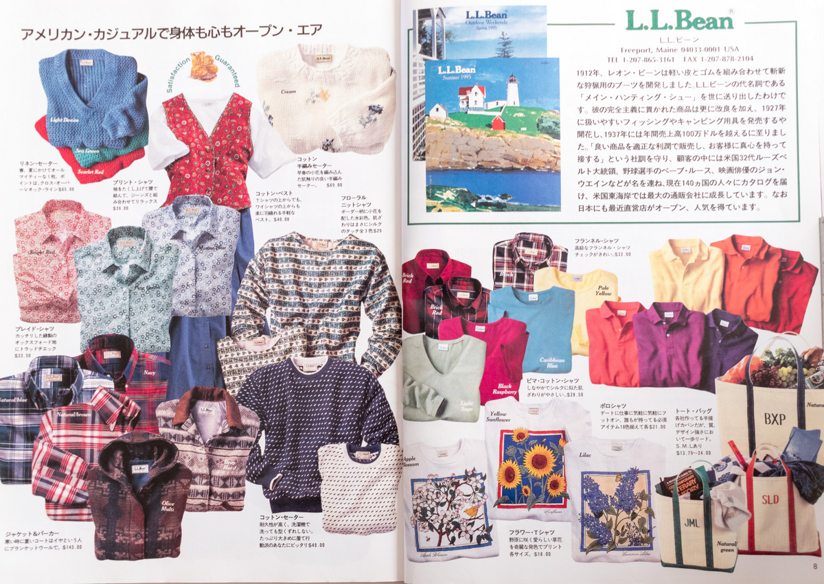 このページの“フラワー・Tシャツ”も、90年代ぽいデザインでいい感じ。LLビーンの代名詞的存在であるトートバッグ、ボートアンドトートももちろん掲載されています。
