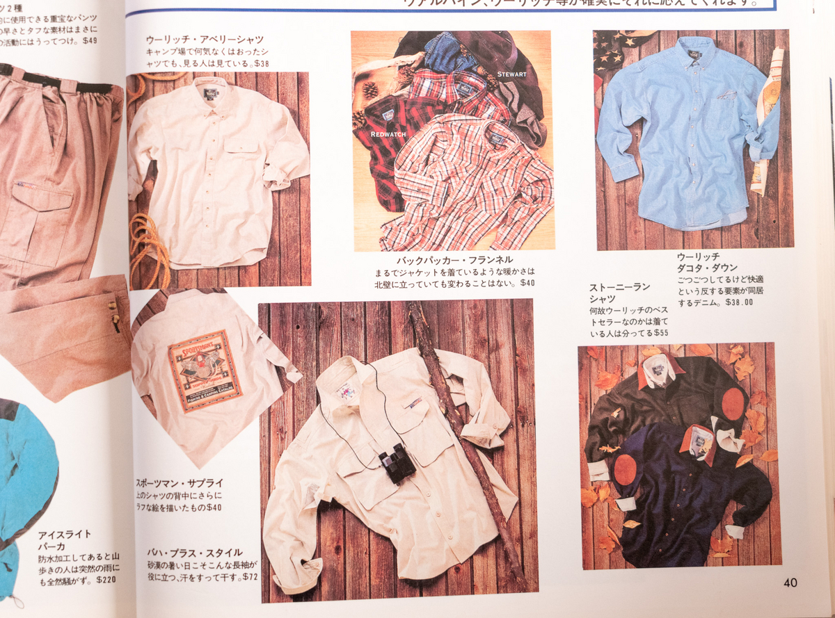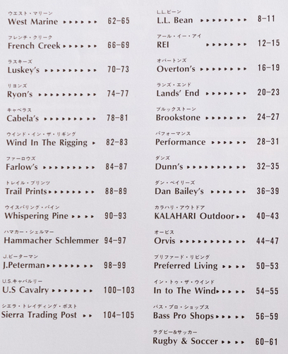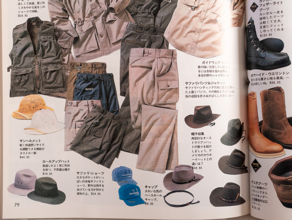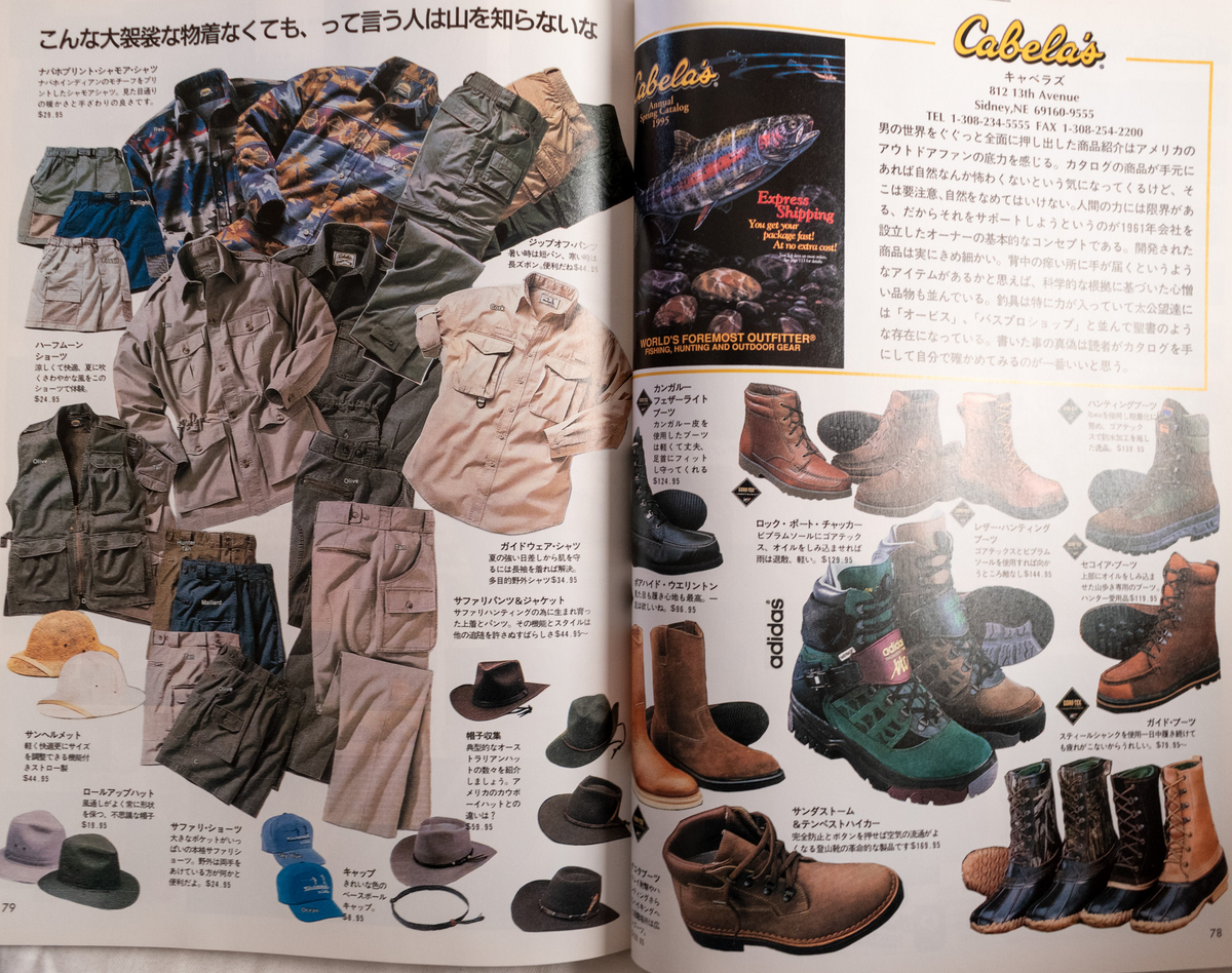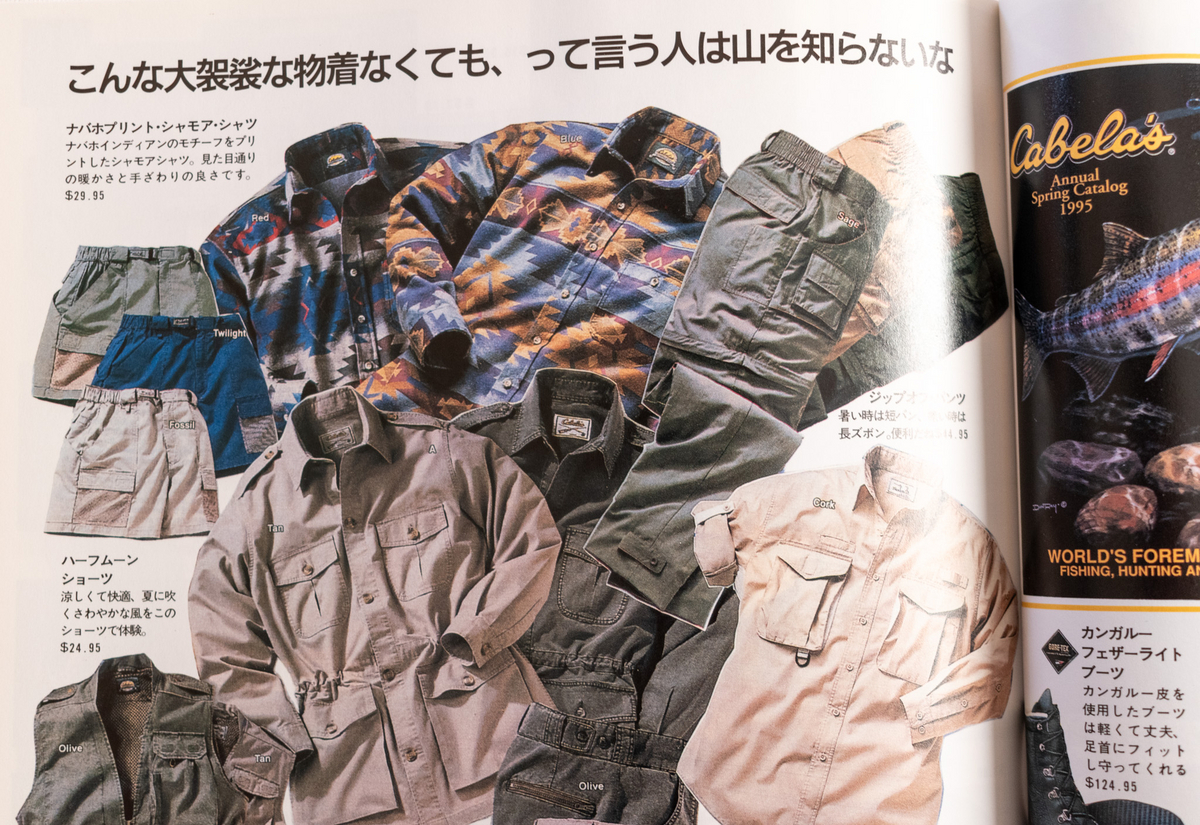 “遭難を最小限に食い止める為の製品を提供してくれるカタログ”で“ガチガチの登山用品だらけ”という、ガチ感の強いアウトドアアイテムを扱っており、ブランドはシェラ・デザインズ、グレゴリー、ロウ・アルパイン、ウーリッチ(ウールリッチの誤植?)などの、今も人気のブランドの数々が掲載されています。
