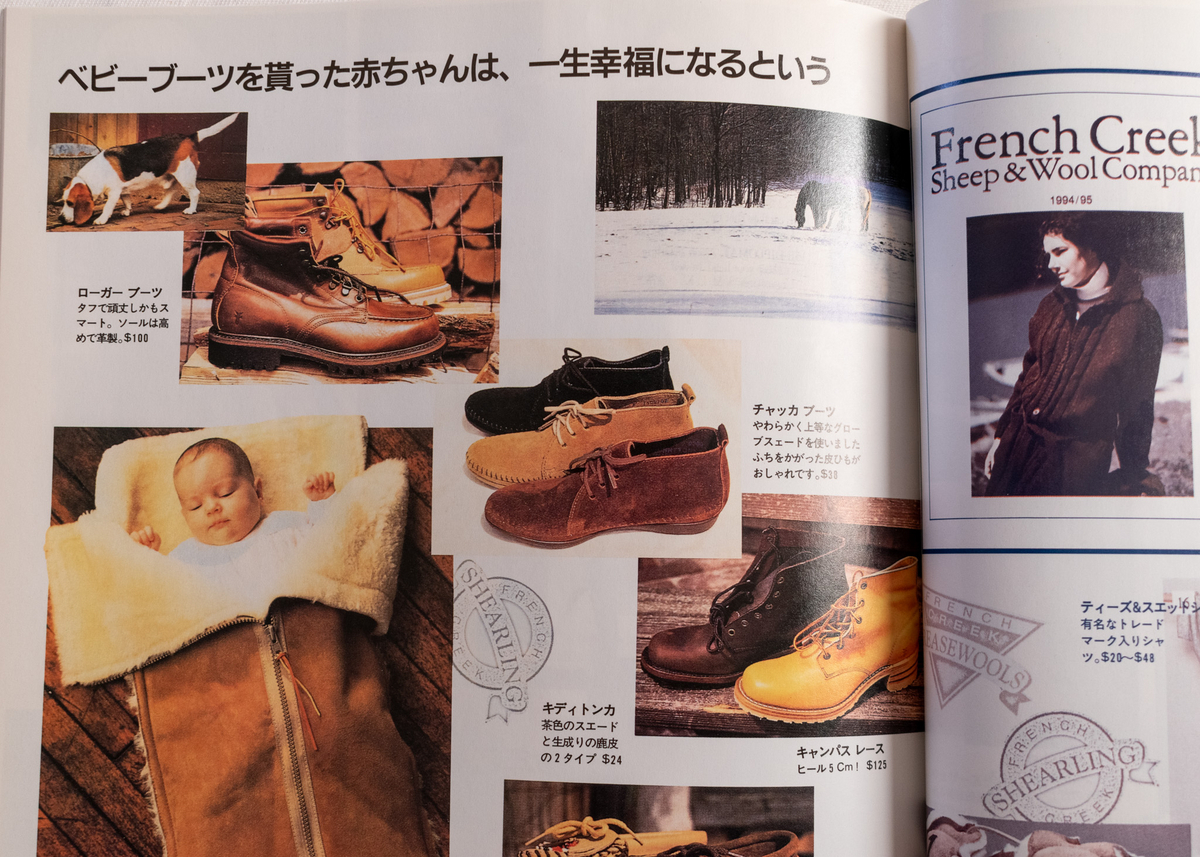 そして、内容の中心はカタログからピックアップされたと思われる画像。当たり前ですが、掲載されているのは1995年当時新品として販売されていた商品。つまり、このムックは昨今人気も価格も上昇している90年代古着のカタログであるとも言い換えられます。
