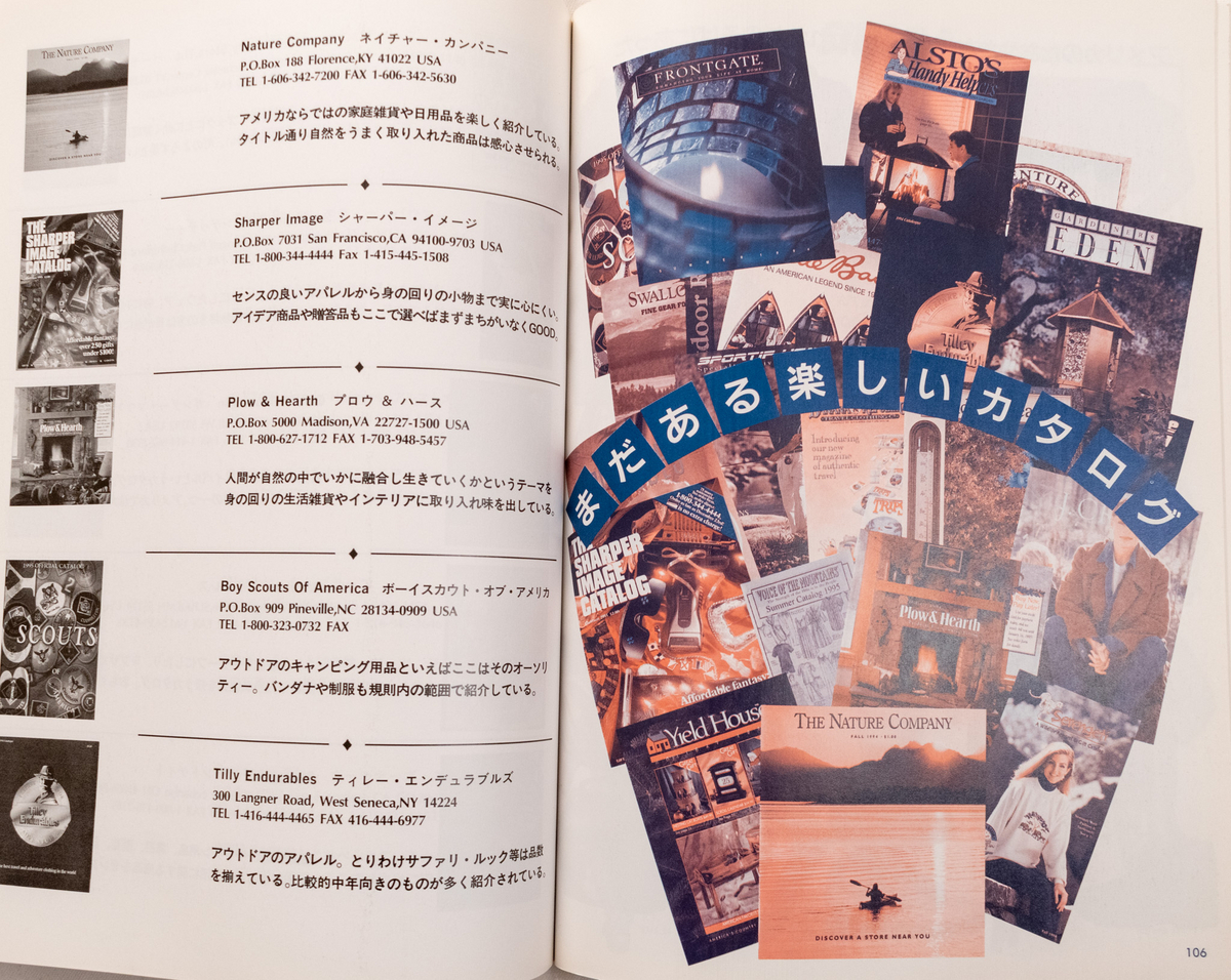 こちらが裏表紙。このムックの発売は1995年です。この「カタログのカタログ」の内容は、1995年のアウトドア系を中心としたアメリカの通販カタログのカタログと言えるでしょう。