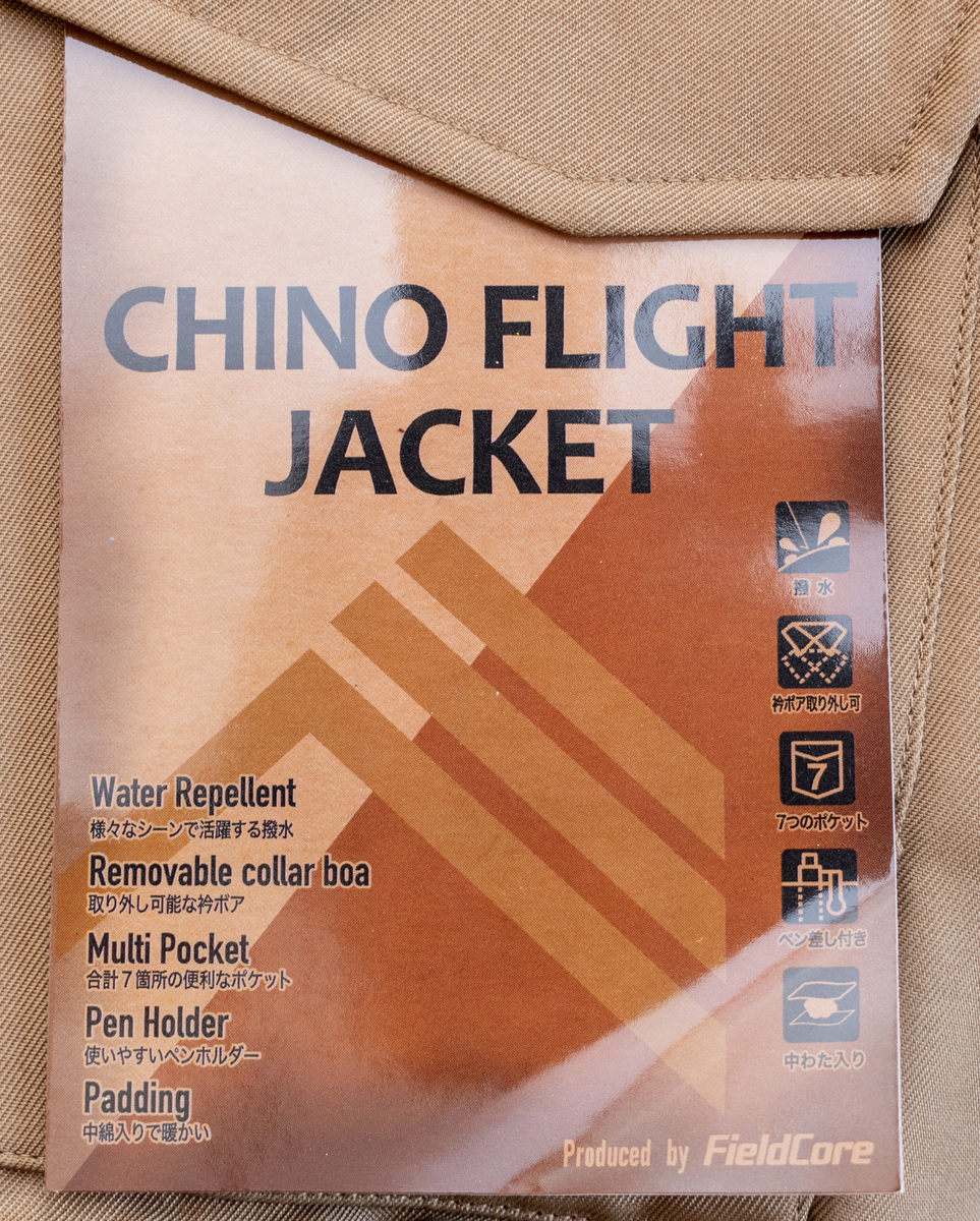 ちょっと不便かもしれないけど、着てみたいと感じてしまう魅力が、「撥水チノフライトジャケット」にはあると思います。