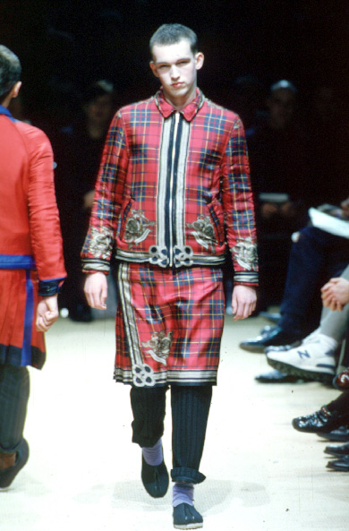 コムデギャルソンオムプリュス1999年秋冬コレクションのテーマは「スベニール・キッチュ」。エルメスのスカーフのような生地が印象的なので、「エルメス期」とも呼ばれています。