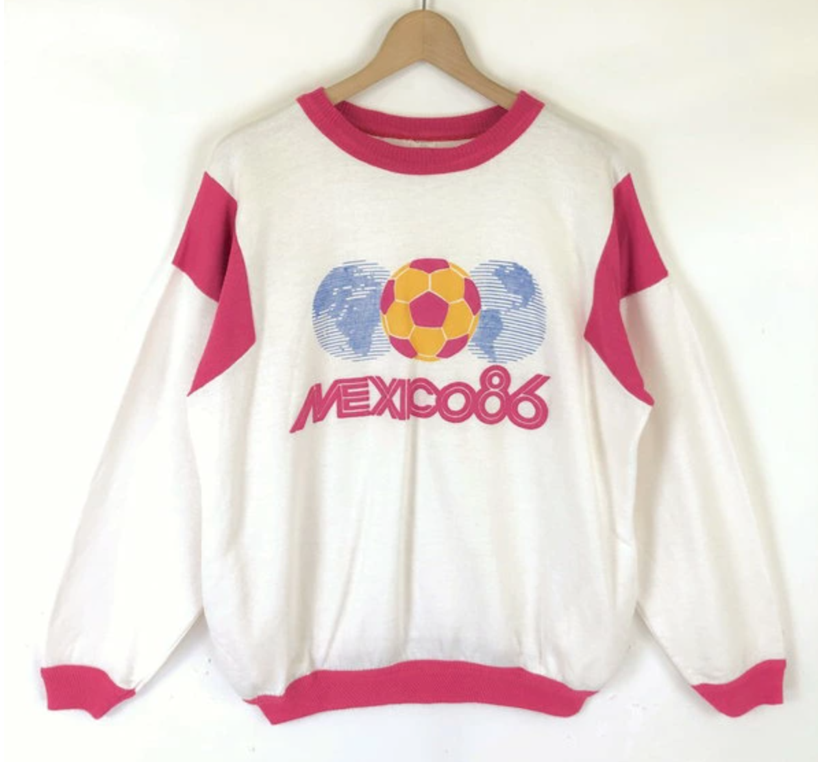 まず、こちらは1986年のワールドカップメキシコ大会のスウェット。配色デザインがかなり個性的。