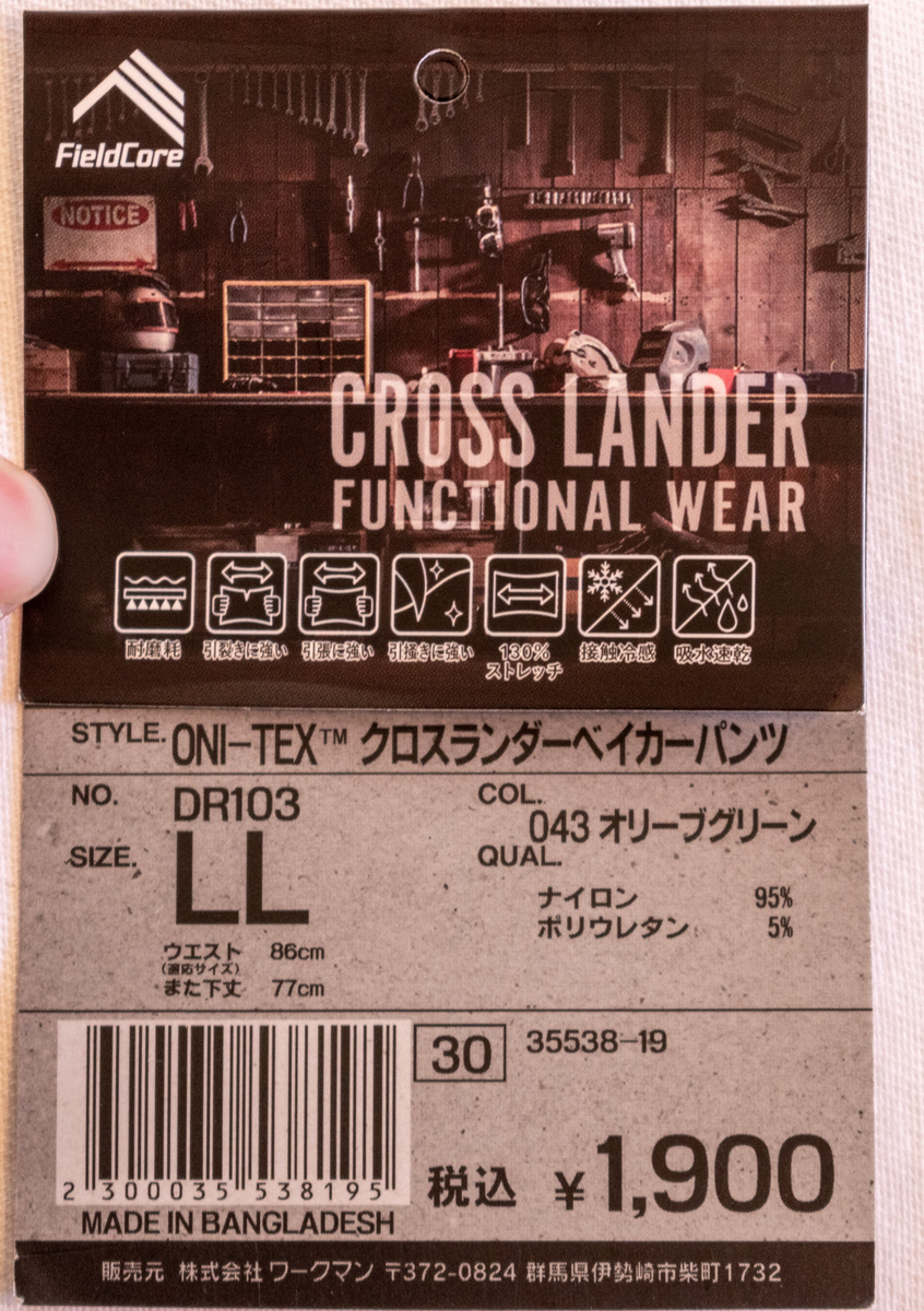 ワークマン×山田耕史共同開発「ONI-TEXクロスランダーベイカーパンツ」です。