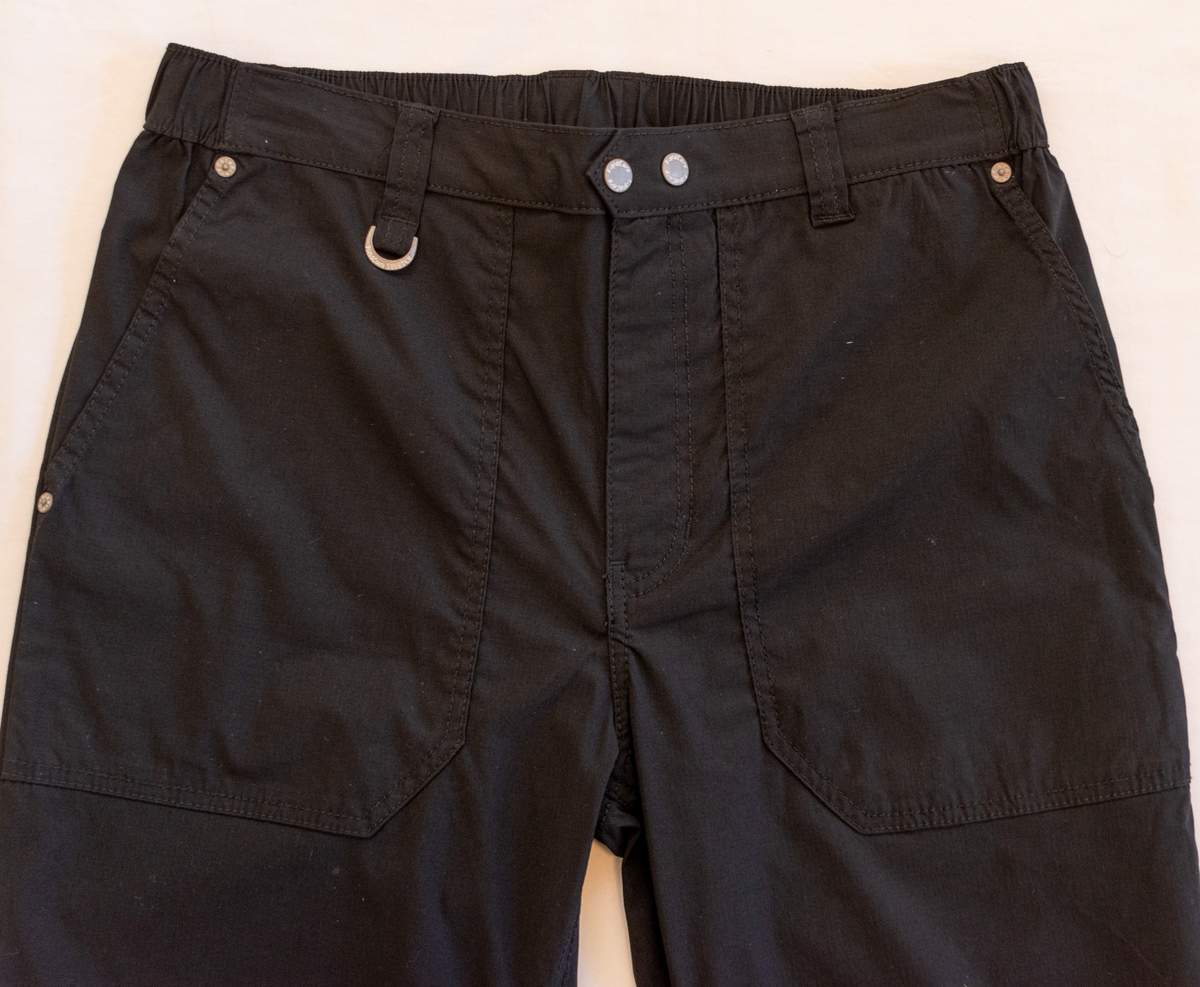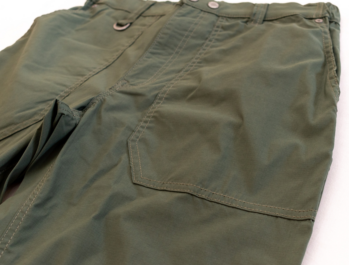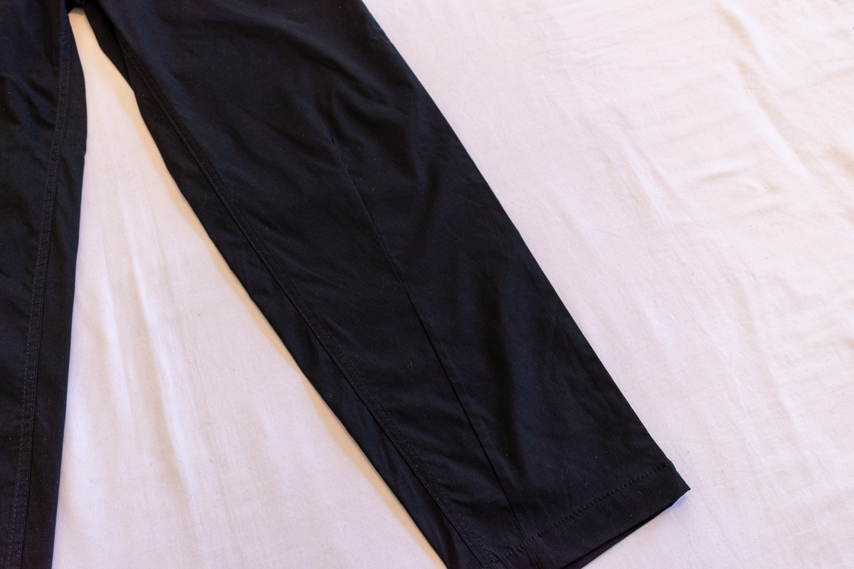 さて、「ONI-TEXクロスランダーベイカーパンツ」のデザインやディテールを見ていきましょう。山田耕史共同開発製品ならではのシンプルでベーシックなデザイン。機能性とは関係ない装飾は全て削ぎ落とされています。