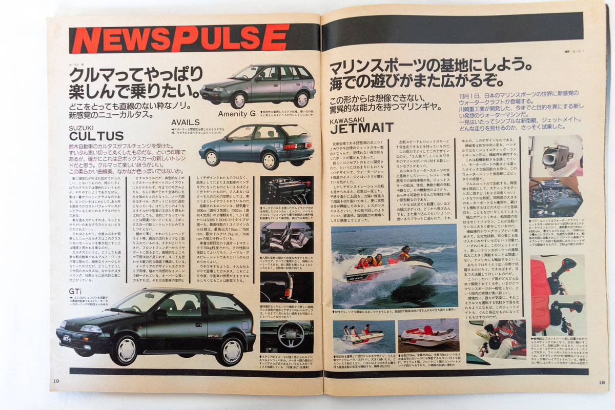 右ページは、なんと川崎重工の105万円のモーターボート。こちらを“マリンスポーツの基地にしよう。海での遊びがまた広がるぞ”と、お気軽に紹介しているところにもバブル期の「ゼータク」っぷりを感じます。