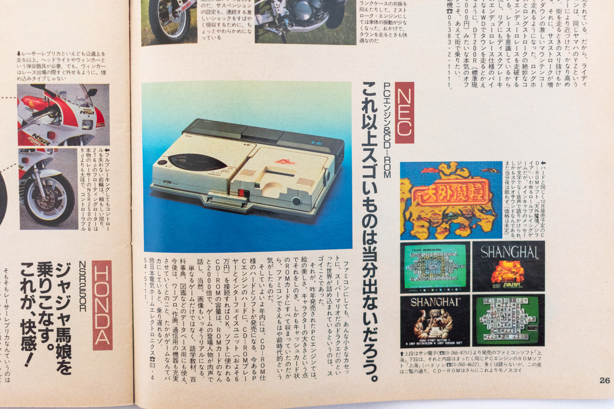 “これ以上スゴいものは当分出ないだろう”とされているのは、NECのゲーム機PCエンジン。当時8歳だった僕は、ファミコンを買ってもらったばかり。友達の家でも、PCエンジンで遊んだ記憶はありません。
