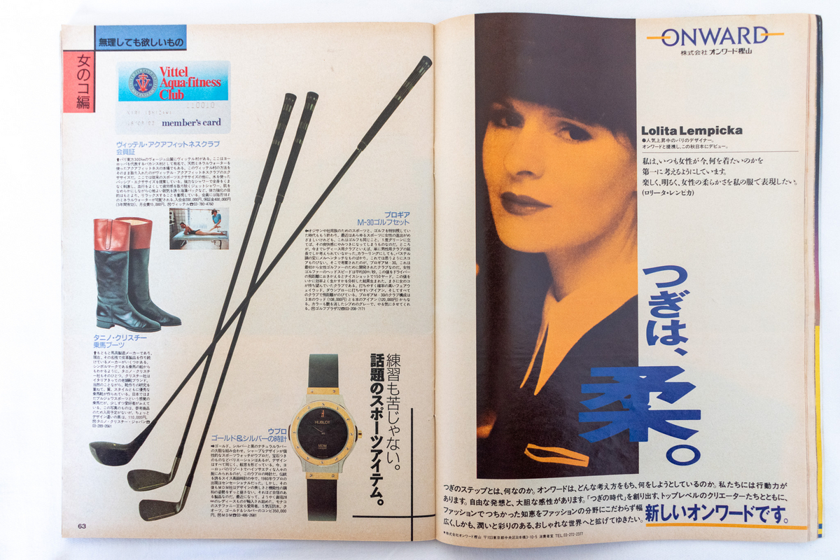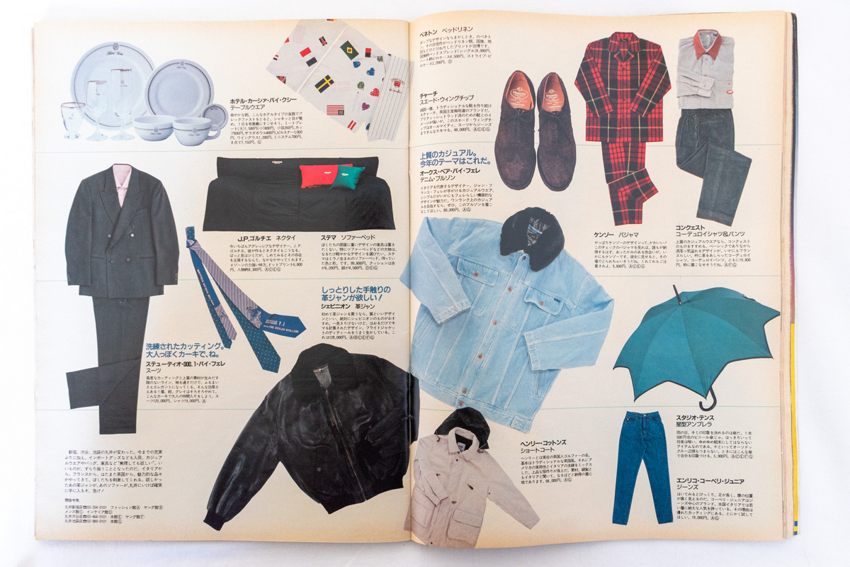 表紙の“もうワンランク上のゼータク”というキャッチコピーから、既に「ゼータク」自体は当たり前になっているというバブル経済真っ只中のファッション観が垣間見えます。