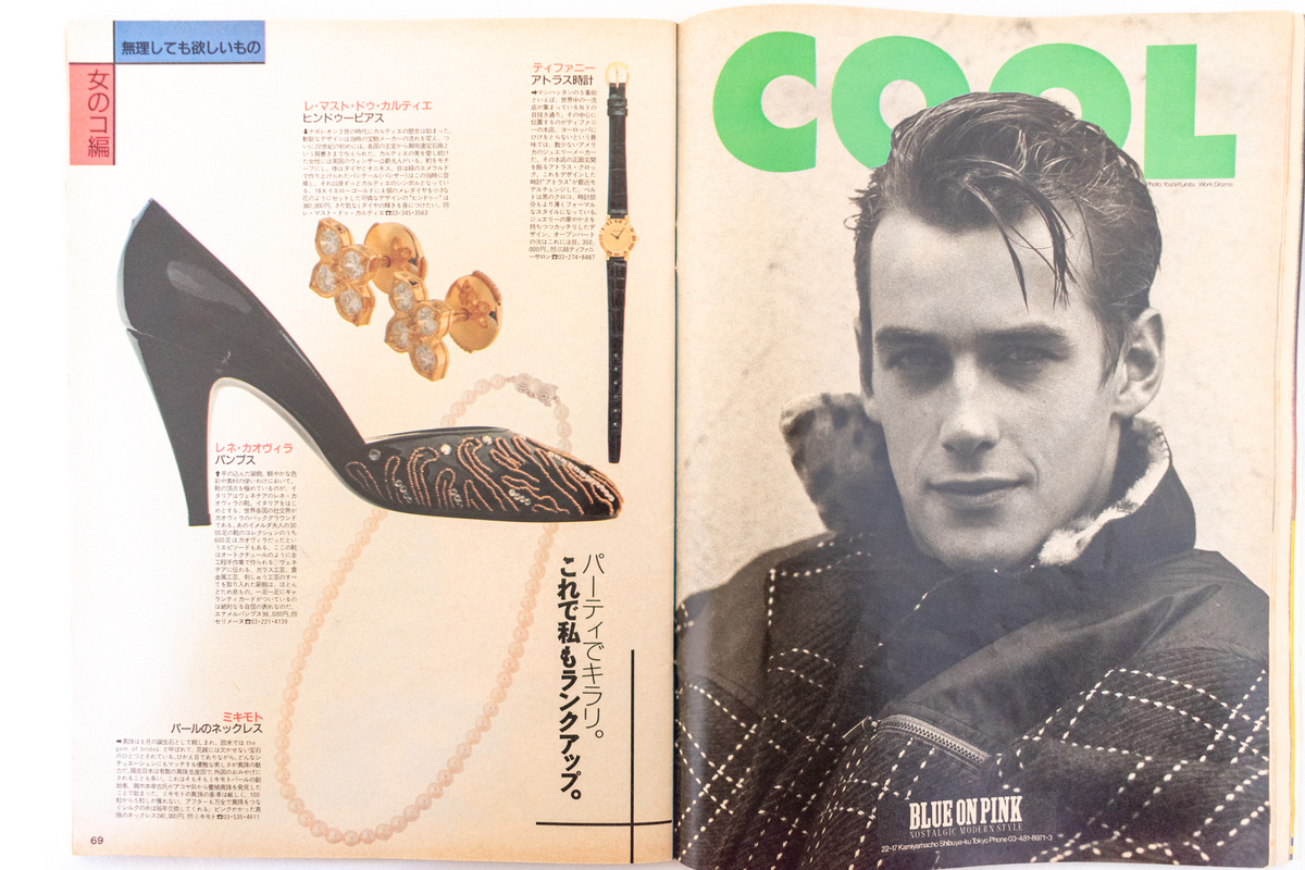 左ページは“無理しても欲しいもの 女のコ編”という特集ですが、“ちょっと高いけれど、持っていればもちろん尊敬の的になることうけあいだ。優越感に浸るため、おしゃれ人間と自負するためにも是非、手に入れたいものをご紹介!”と、ファッション性がどうこうはではなく、ステータスのための消費であることを誇示しているところに、今の感覚からすると虚しさを感じてしまいます。