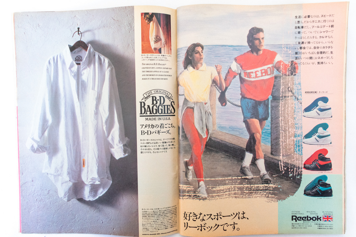 ファッションについては、リーヴァイスの501や505が《定番》となり、ピカデリー、ヴァレンチノやアルマーニ、シピーやシマロン、リベルト、C-17などのヨーロピアン・ジーンズが流行になる。だが、これに合わせるのは判で押したように、ポロ、ラコステ、フレッド・ベリーのいずれかのポロシャツ、秋にはジョンスメドレーのVネック、冬には米海軍のボア・ジャケット、MA-1(フライト・ジャケット)またはフィールド・ジャケットと決まり切った《定番》が好まれ、エスニックなアクセサリーでせいぜい違いを示すような、些細な違いと創意工夫しかない状況だった。